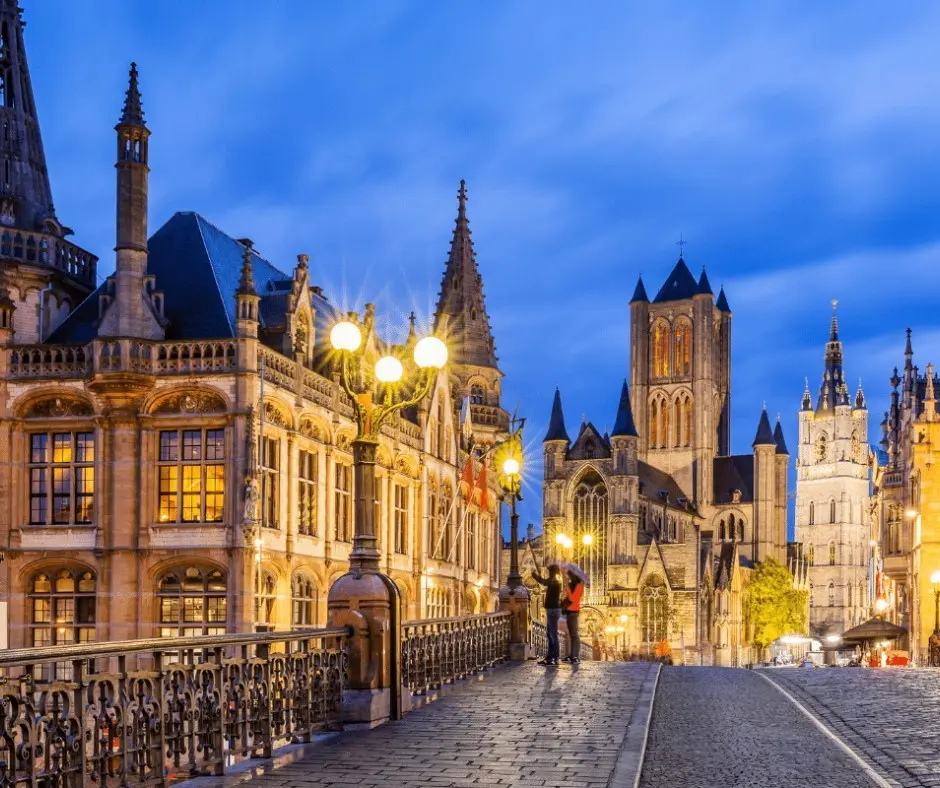A continuación, nos dirigimos a Gante para visitar su casco histórico donde destaca la Iglesia de San Nicolás, la Iglesia de San Miguel y la Catedral de San Bavón que alberga famosas obras artísticas como la „Vocación de San Bavón“ de Rubens y el políptico de los hermanos Van Eyck „La Adoración del Cordero Místico“.