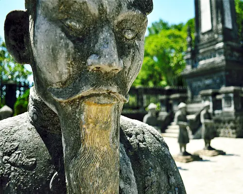 Arrivée à Hué tôt le matin. Accueil par un guide local à la gare et transfert à l'hôtel pour le petit-déjeuner. Puis, découverte d’Hué à travers une promenade d'une heure en cyclo-pousse, permettant d’explorer l’ancienne capitale impériale du Vietnam sous la dynastie des Nguyen. Visite de la Cité Impériale, un vaste complexe composé de temples, pavillons, musées et galeries d’une beauté remarquable. Poursuite avec la visite de la Pagode de la Dame Céleste, haute de sept étages, dont le cadre enchanteur a inspiré de nombreux poèmes romantiques et chansons lyriques. Déjeuner typique et savoureux chez l’habitant, au cœur d’un jardin luxuriant. En début d’après-midi, visite du Tombeau de l’Empereur Tu Duc, où bâtiments somptueux et jardins sont harmonieusement agencés selon les principes du feng shui. L’ensemble forme un immense parc où la nature est omniprésente. Enfin, arrêt dans un atelier familial spécialisé dans la fabrication traditionnelle de bâtonnets d’encens et de chapeaux coniques. Nuit à Hué.