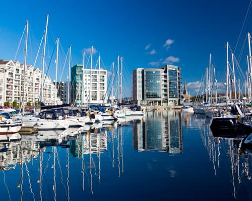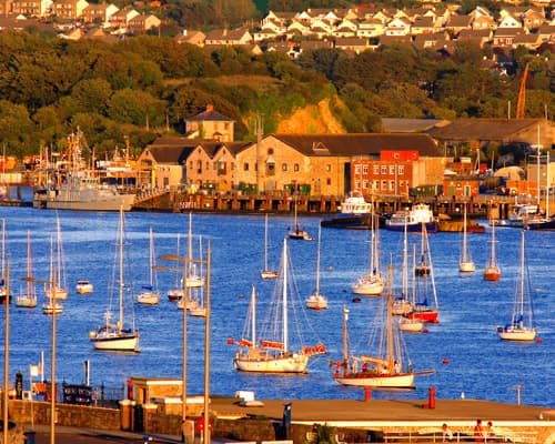 Plymouth är en stad i Devon, England, sydväst om Exeter och väst-sydväst om London. Den ligger mellan mynningarna av floderna Plym i öst och Tamar i väst, där de möter Plymouth Sound. Plymouths tidiga historia sträcker sig tillbaka till bronsåldern, då en första bosättning uppstod vid Mount Batten. Denna bosättning fortsatte som en handelspost för det romerska riket, tills den överträffades av den mer välmående byn Sutton, nu kallad Plymouth. År 1620 avreste pilgrimsfäderna Plymouth för den nya världen och etablerade Plymouth-kolonin. HUVUDATTRAKTIONER FÖR TURISTER • National Marine Aquarium är Storbritanniens främsta akvarium och det djupaste i Europa. Du hittar det nära det historiska Barbican-området, som inkluderar Storbritanniens äldsta bageri och Mayflower Steps, där pilgrimsfäderna lämnade för den nya världen 1621. • Saltram House, som ses i början av 'Förnuft och känsla'. Konstnären Sir Joshua Reynolds mecenater, Parker-familjen, bodde här, och huset har designelement av Robert Adams. • The Royal William Yard, en gång platsen där den brittiska flottan försågs. Staden är hem för den största flottbasen i västra Europa, som är öppen för allmänheten på flottans dagar. • Plymouth City Museum and Art Gallery. Med en särskild utställning om Darwins upptäcktsresa plus naturhistoriska gallerier och samlingar av Kina och keramik. • Plymouth Dome. Belägen uppe på Hoe, detta informationscenter erbjöd interaktiva och praktiska utställningar, där besökare kunde segla ombord på Mayflower, utforska en elisabetansk gata och stå vid kanten av Plymouth Sound. • Smeaton’s Tower. Högt uppe på Hoe, detta landmärke i Plymouth byggdes på Eddystone-reef 1759, men togs ner och flyttades till sin nuvarande position i början av 1880-talet efter upptäckten att havet underminerade klippan den stod på.